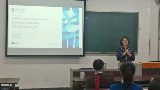 此次系列讲座共分为三个主题,分别为“长壁采空区自燃预测及防护”、“中国矿业通风与职业病 ”以及“利用定温差诱发煤氧化预测自燃”。在两天的时间里,曹博士结合自身在allwincity万象城和澳大利亚莫纳什大学的学习研究经历,介绍了矿山长壁采空区自燃预测现状及主要防护措施方法;介绍了国内外采矿工业主要职业病及发展趋势及其其主要影响因素;最后介绍了利用定温差同诱发煤氧化预测自燃的研究现状及未来发展方向。同时,曹博士也结合自身经历,向学生介绍了有关学习科研方面的经历。