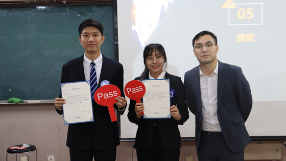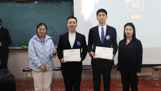 颁奖环节,闫然同学荣获一等奖,并成功晋级学校模拟求职大赛决赛。高深远、叶冠华同学荣获二等奖,罗衍阔、郭吉祥、李梦瑶同学荣获三等奖,王雨声、邹圣琦、薛森淼、马嫣然、杨宇宸、杨阳同学荣获优秀奖。