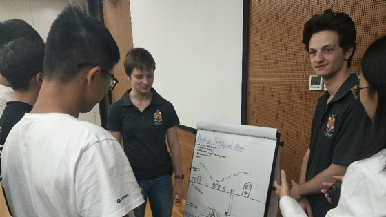 随后,所有学生围绕“Intelligent Mine”进行了Workshop分组讨论及汇报。现场讨论及交流气氛十分活跃,中澳学生友谊也迅速升温。