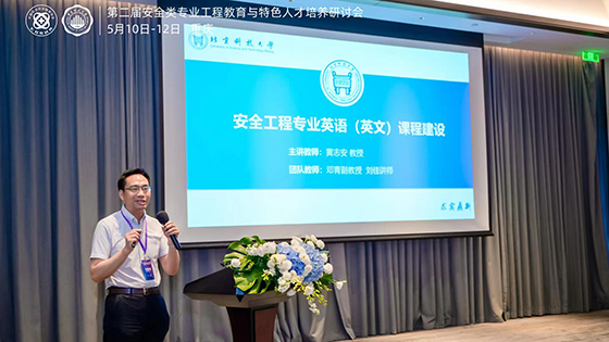 在安全类本科教学改革研究与实践会场上,黄志安教授作为特邀嘉宾作了题为《安全工程专业英语课程建设》的报告,该报告全面探讨了安全工程专业英语课程的建设与优化,强调了提高学生英语水平在安全工程领域的重要性。他分享了课程设计理念、内容设置和教学方法,并强调将英语课程与实践相结合以提升学生综合能力。这为安全类本科教学改革提供了重要经验和参考,为培养优秀安全工程专业人才奠定了坚实基础。