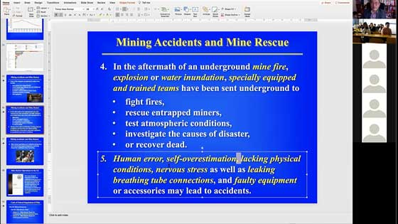 在两次讲座中,Tien教授结合自身在澳洲莫纳什大学和美国密苏里科技大学的教学经历,介绍了美国矿山安全救援的现状;介绍了澳洲以及美国矿山安全防控历史及现状,并与国内情况进行了对比;对澳洲面临的一些主要灾害和防控体系进行了介绍,并结合最近新冠疫情的情况,介绍了澳大利亚的一些疫情防控措施以及澳大利亚的一些管理制度对疫情控制的影响;最后Tien教授通过一段智利圣何塞铜矿矿难救援的视频,介绍了一些矿山救援的知识。