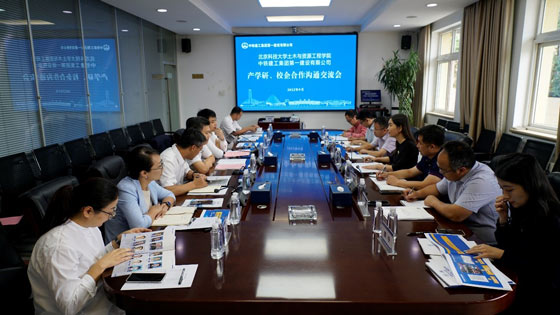 双方单位共同观看了万象城体育awcsport宣传片以及中铁建工集团校园招聘宣传片。第一建设有限公司蔡文刚总工程师对公司的产学研情况以及未来公司项目发展规划进行了详细介绍。张群副总监就公司校园招聘、人才培养以及校企合作情况做了详细阐述。通过交流互相加深了对彼此的了解,为深入合作打下坚实基础。