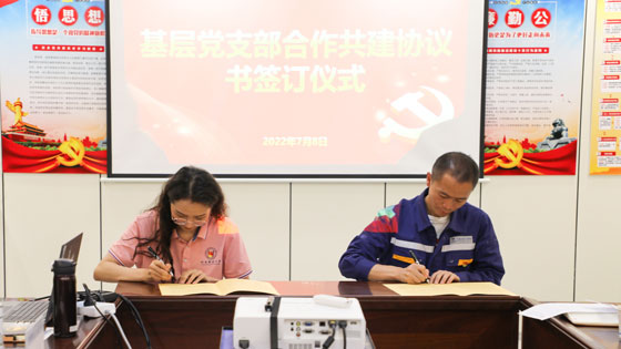 随后,两个支部签署基层党支部合作共建协议书,并对协议书内容进行宣读,明确双方的责任和义务。郑志华表示支部结对共建签约是一个新起点,代表着双方今后将在理论学习、技术攻关等多方面开展长期合作,双方党支部应深入沟通,加强合作,将共建工作落到实处,引领生产,保障安全。