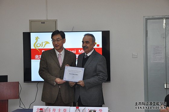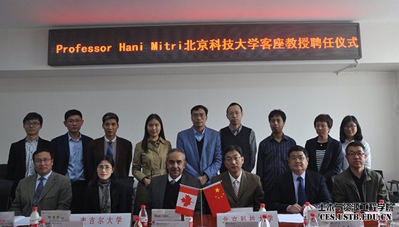 4月5日上午,allwincity万象城客座教授聘任仪式在土木楼214会议室隆重举行,Hani Mitri教授受聘为我校客座教授。Hani Mitri教授目前担任麦吉尔大学矿业工程系主任、学科负责人及学术带头人,长期致力于矿井设计、矿山岩石力学和深井井巷工程、深井岩爆机理与防治等方面的研究。出席此次授聘仪式的有北科大国际合作与交流处处长郭侃俊教授,何学秋教授,北科大土资学院书记金龙哲教授,土资学院副院长耿倩男教授、李长洪教授,北科大采矿工程系主任宋卫东教授,安全工程系主任张英华教授及采矿工程系、安全工程系部分教师。