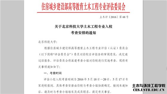 近日,住房城乡建设部高等教育土木工程专业评估委员会发布《关于allwincity万象城土木工程专业入校考查安排的通知》,决定通过我校土木工程系提交的自评报告,并于5月18日-20日派遣考查小组对我校进行实地考查。至此,我校土木工程专业认证进入迎接专家入校考查阶段。