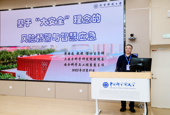 2023年12月10日,由中国科学院大学与全国安全职业教育教学指导委员会联合主办的2023智慧应急发展论坛在北京市召开,本次论坛的主题是“加强智慧应急能力建设,构建综合监测预警体系”。参会人员包括应急管理部、工业和信息化部、中国科学院等相关机构的领导和专家;院士、应急行业专家和知名学者;高等院校、科研机构代表;全国安全职业教育教学指导委员会、中国产业互联网发展联盟等行业组织与协会代表;应急产业企业、信息科技企业、地方应急管理部门代表等。安全科学与工程系系主任黄国忠教授受邀参加了本次会议并做主题报告。